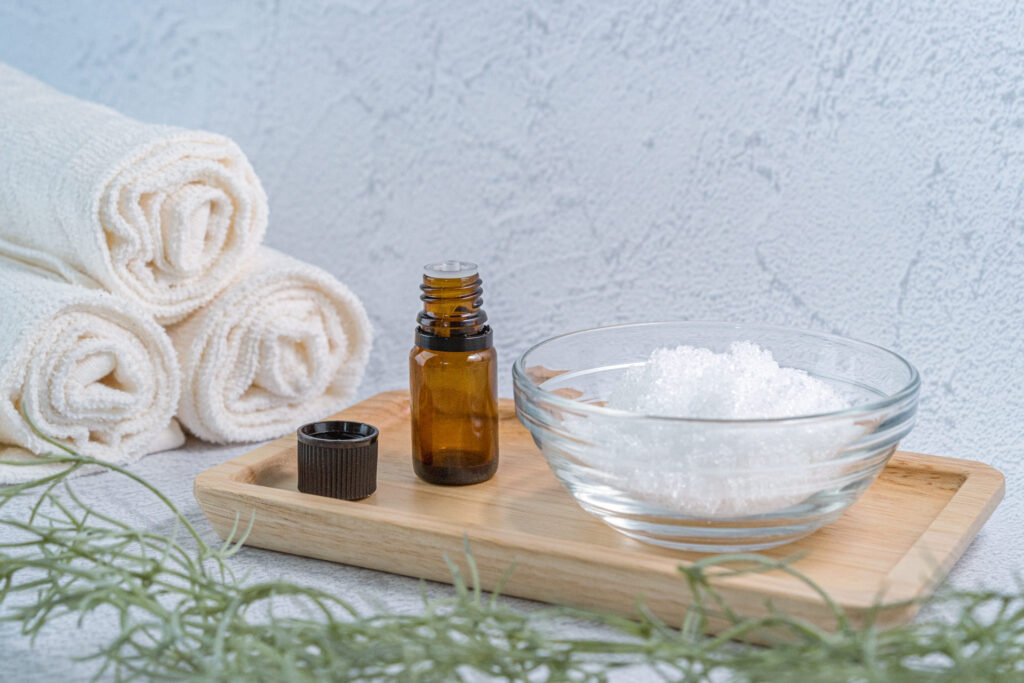 お塩に精油を混ぜてから、お湯に入れてよくかき混ぜましょう。