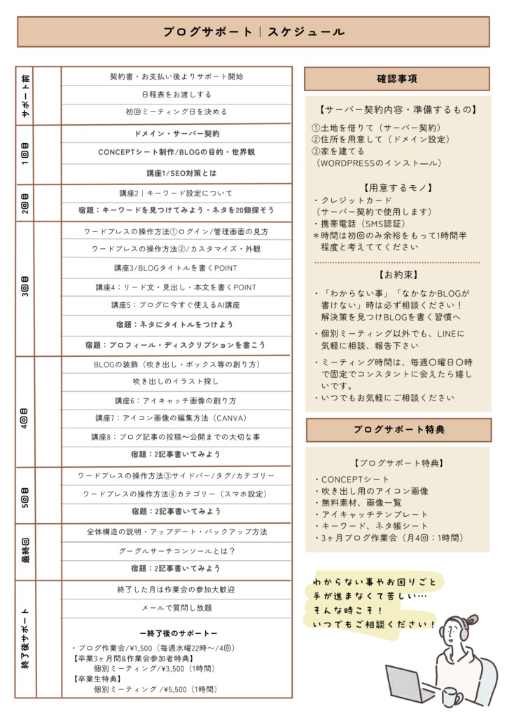 ただブログを書く方法をお伝えするだけのサポートはしません。